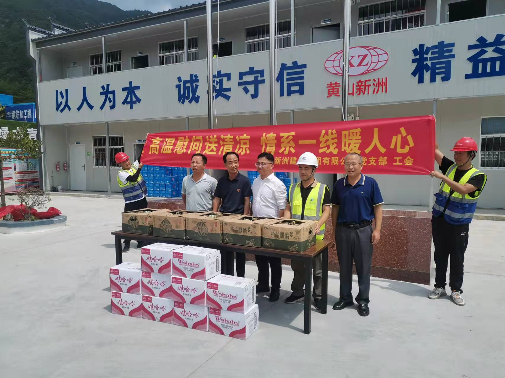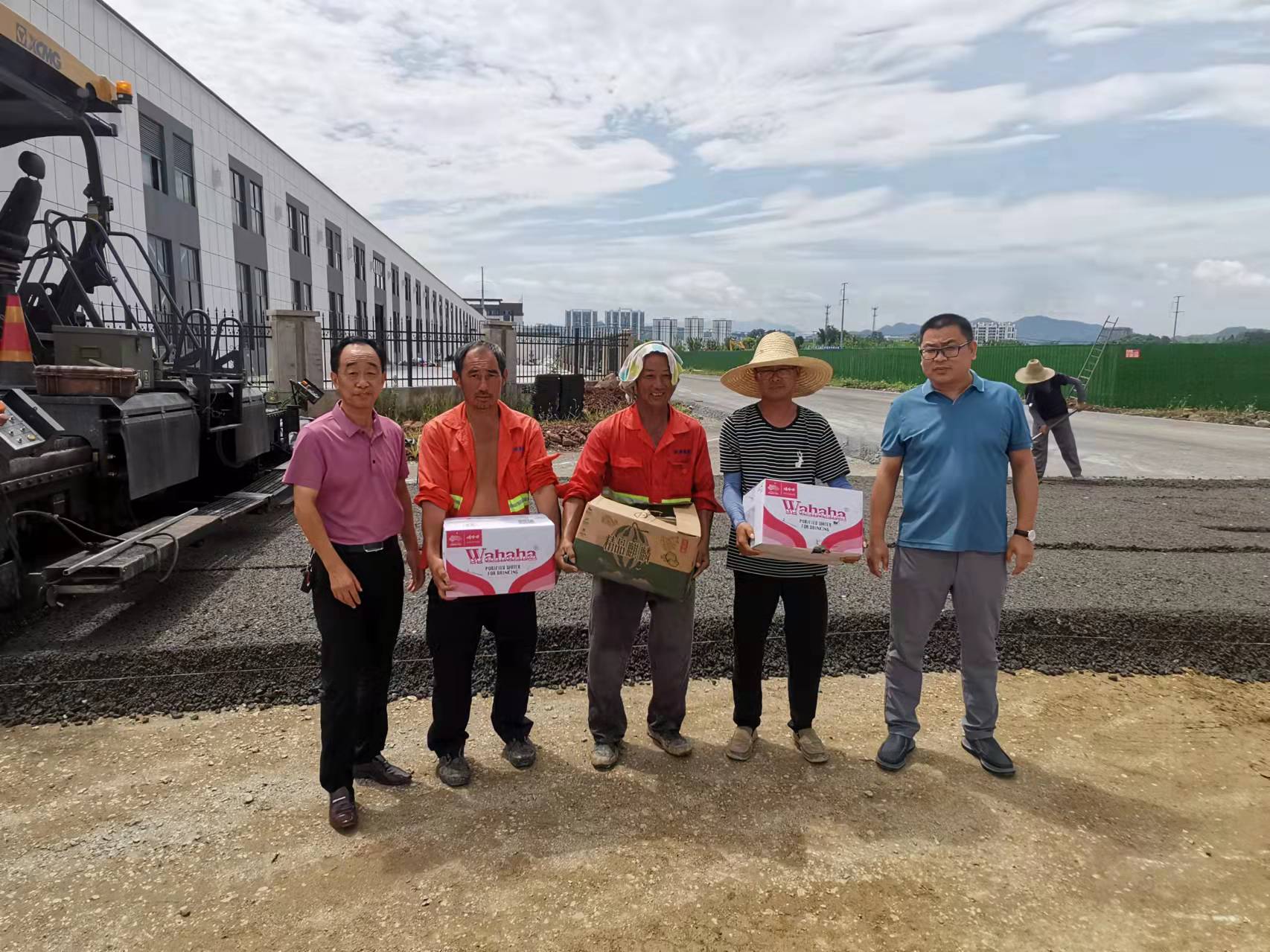 為切實維護(hù)高溫期間廣大一線職工的身體健康,2022年7月19日至20日,由集團(tuán)公司總經(jīng)理李利成、分管副總張遠(yuǎn)林、黨支部書記李惠明、安全部經(jīng)理吳正晨等組成慰問小組,分別對各在建項目及路面施工現(xiàn)場分批、分區(qū)域送去西瓜、礦泉水等慰問品,給奮戰(zhàn)在一線的職工送去了絲絲涼意,獻(xiàn)上了一份誠摯的關(guān)懷。