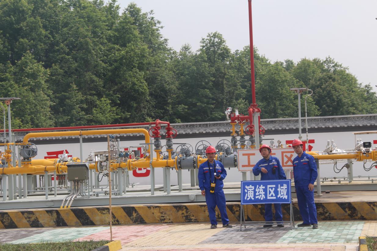 會后眾人前往綠洲直供站工藝區(qū),結(jié)合本次培訓(xùn)內(nèi)容開展綠洲直供站“站內(nèi)工藝設(shè)備設(shè)施天然氣泄漏”應(yīng)急處置演練。