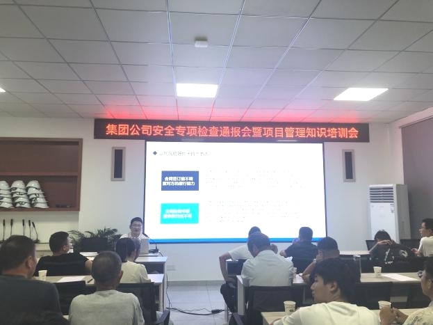 為積極防范各類事故發(fā)生,強(qiáng)化風(fēng)險(xiǎn)意識(shí),確保各在建項(xiàng)目施工安全穩(wěn)定,集團(tuán)公司于7月下旬組織開(kāi)展了安全生產(chǎn)專項(xiàng)檢查,并于2023年8月19日在綠洲公司二樓會(huì)議室召開(kāi)了關(guān)于安全專項(xiàng)檢查通報(bào)會(huì)暨項(xiàng)目管理知識(shí)培訓(xùn)會(huì)。會(huì)議由集團(tuán)公司分管安全副總經(jīng)理張遠(yuǎn)林主持,黨支部書(shū)記李惠明、法務(wù)部、安全部、財(cái)務(wù)部、綜合辦公室、人力資源部、工程部及項(xiàng)目管理人員共計(jì)41人參會(huì)。